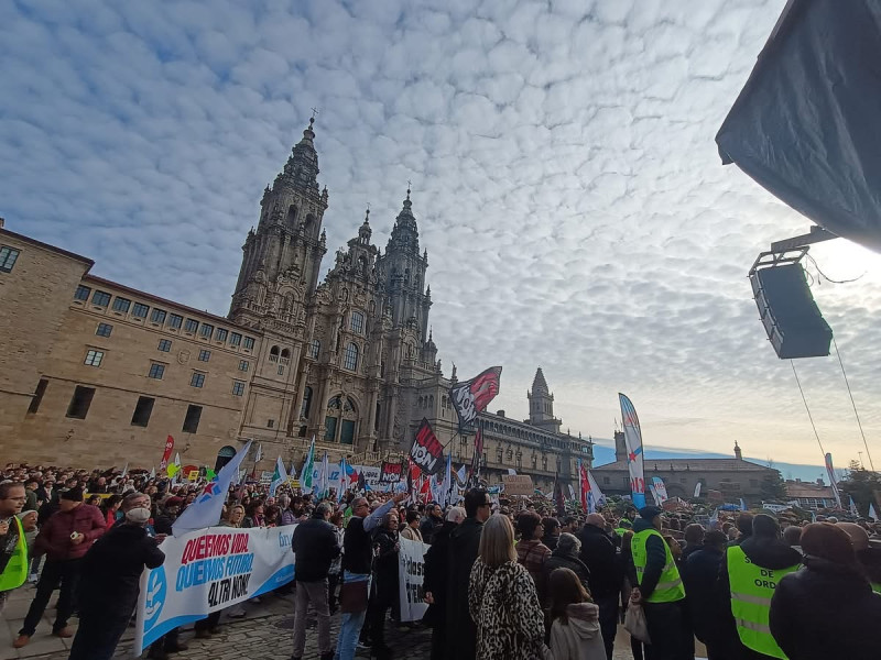 - El Obradoiro se volvió a llenar en una movilización masiva contra lo proyecto de Altri y la mina de Touro-O Pino, considerados una amenaza para lo rural, el agua y el modelo productivo gallego.