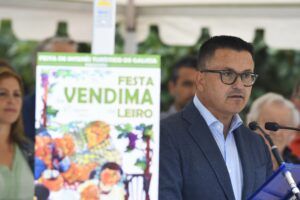 Leiro (Ourense), 27 de agosto de 2023– El conselleiro del Medio Rural, José González, hizo hoy un reconocimiento a los “impulsores del vino del Ribeiro”, por su contribución a difundir la calidad, la tradición y el carácter único de esta producción agroalimentaria. El titular de Medio Rural ejerció como pregonero de la XXXII Fiesta de la Vendimia de Leiro, donde ensalzó los vinos del Ribeiro en particular y toda la riqueza vitivinícola de Galicia en general.