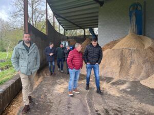 Baraja (Lugo), 12 de abril de 2023.- El director de la Agencia Gallega de la Industria Forestal, Jacobo Aboal, y el director general de Planificación y Ordenación Forestal, José Luis Chan, acompañados por el delegado territorial de la Xunta en Lugo, Javier Arias, y el alcalde de Baraja, Miguel González, visitaron hoy las instalaciones de Maderbar, una empresa sita en la localidad lucense de Baraja, que centra su actividad en el sector de la transformación de la madera de frondosa caducifolia, desde la fabricación de barricas hasta la producción de tablas y vigas de castaño.