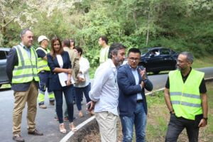 Vilasantar (A Coruña), 21 de julio de 2023.- El conselleiro del Medio Rural, José González, acompañado de la directora general de la Agencia Gallega de Desarrollo Rural, Inés Santé, visitó hoy las obras de rehabilitación del puente del Río Caballar, en el ayuntamiento coruñés de Vilasantar, que facilitan la movilidad de los vecinos de la zona. Allí, el conselleiro hizo también hincapié en la importancia de las medidas de la Xunta que permiten fijar población en el rural y luchar contra lo abandono, caso de las concentraciones parcelarias y los instrumentos de recuperación de la tierra agraria.