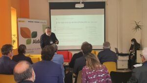 Villaviciosa (Asturias), 5 de mayo de 2022.-El subdirector de Movilidad de Terras, Alejandro Sánchez de Los dice, viene de desgranar las particularidades y ventajas de las aldeas modelo recogidas en la Ley de recuperación de la tierra agraria de Galicia como figura para dinamizar y fijar población en el rural. Así lo hizo en el 1º Encuentro de aldeas del siglo XXI que se celebra en Asturias entre hoy y mañana, con relatorios y visitas de campo.